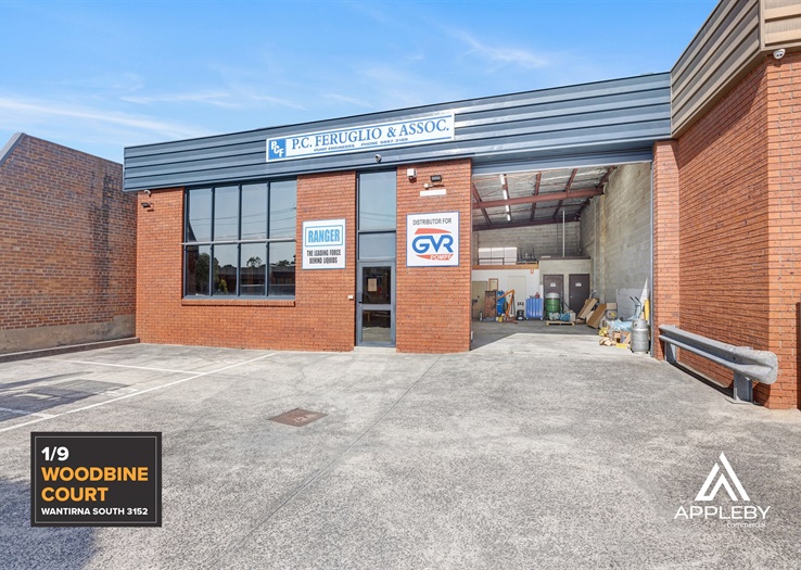 Appleby Commercial is pleased to offer Factory 1, 9 Woodbine Court, Wantirna South to the market for Public Auction to be held on-site on Wednesday 29th October at 12pm - unless sold prior.This well-presented, street-fronted warehouse is located in one of Melbourne's most tightly held industrial pockets, offering easy access to arterial roads and Eastlink.
